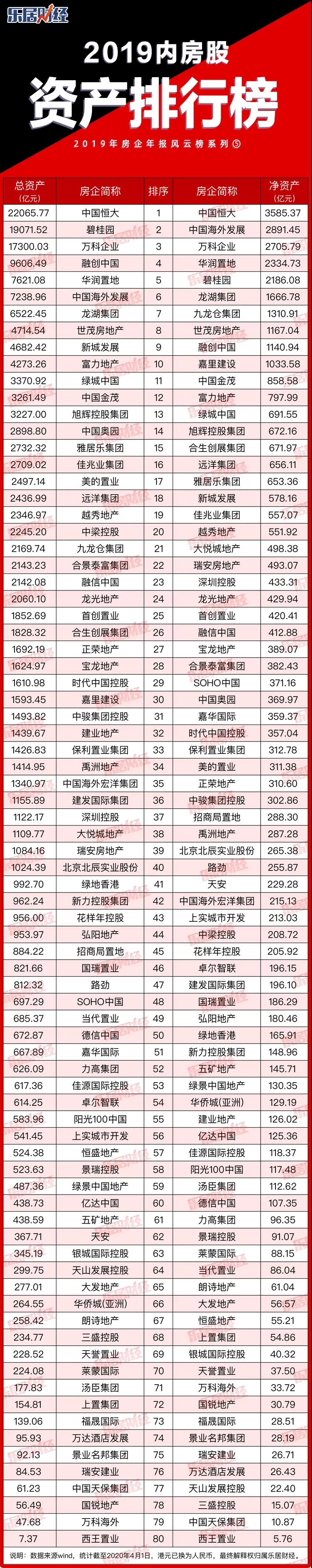 4月3日,乐居财经推出《2019内房股财物排行榜》,从总财物、净财物的总量、增速等维度,复盘房企财物规划之战。